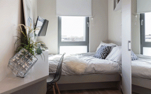 Although the rent is high even for London, it’s inclusive of bills, council tax, access to a gym, a 24-7 on-site property management service and a cleaner every fortnight.