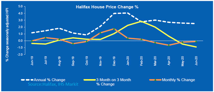 The figures for the second quarter of 2020 showed the average asking price was £237,616, representing a fall of 0.1% on May and a quarterly change of -0.9%. However prices were up 2.5% in June compared with the same period in 2019.