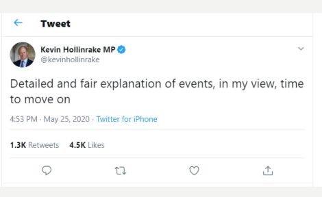 MP for Thirsk and Malton says Cumming's explanation of his rule breaking was 'fair' and urged those on Twitter to 'move on'.