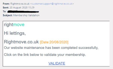 Portal says agents have been reporting credible-looking emails being sent to them urging recipients to click through to a fake Rightmove website.