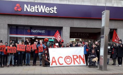 Read how NatWest branches in the UK and Ireland were picketed and several occupied buy activists demonstrating over the bank's 'DSS' mortgage clause.